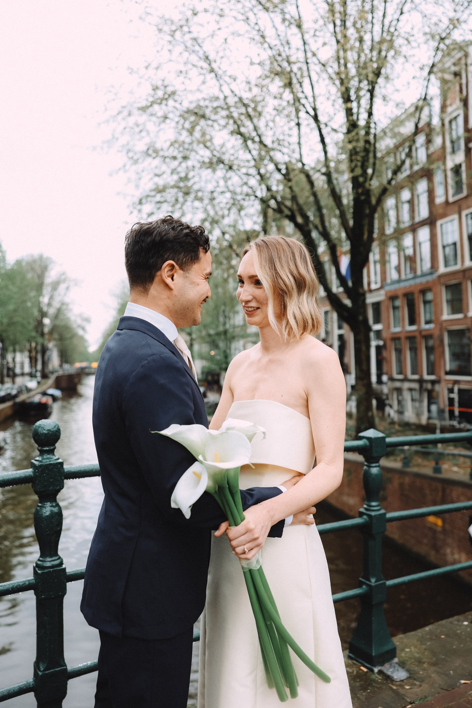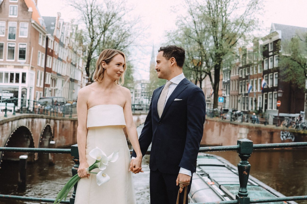 Amsterdam is one of the most popular destinations for destination weddings and elopements in the Netherlands, and this session shows why. The combination of charming architecture, water reflections and soft European light creates the perfect atmosphere for couples who want authentic, emotional and cinematic wedding photos.